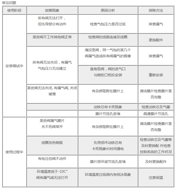 3、工作气源压力为0.1MPa时,即可使脉冲阀关闭。